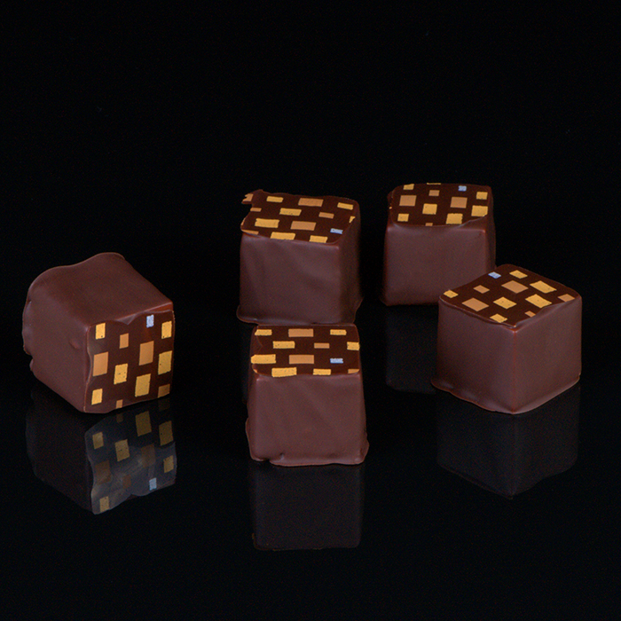 Kostka wykonana jest z dwóch warstw. Warstwa dolna jest z cremino z deserowej czekolady, a warstwa górna jest z cremino na białej czekoladzie. Całość zatopiona jest w czekoladzie deserowej.