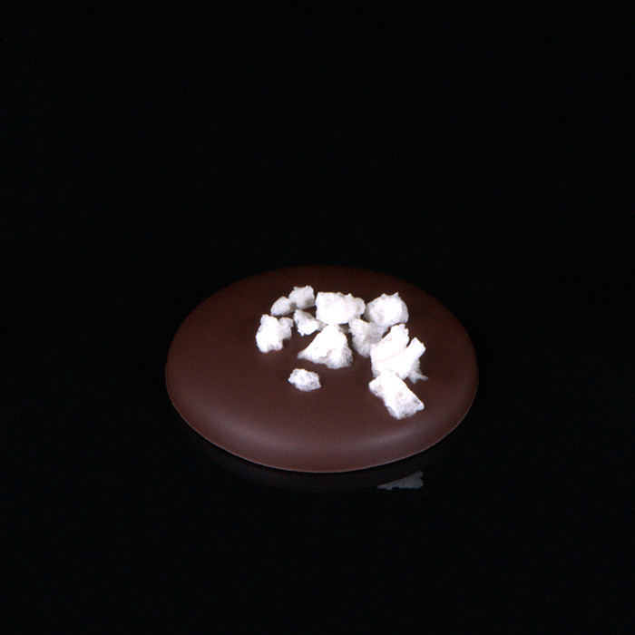 Czekolada deserowa wypełniona tintoretto z białą czekoladą i gruszką.