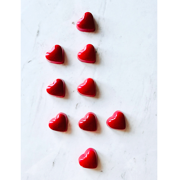 Delikatna biała czekolada połączona z soczystymi owocami malin.