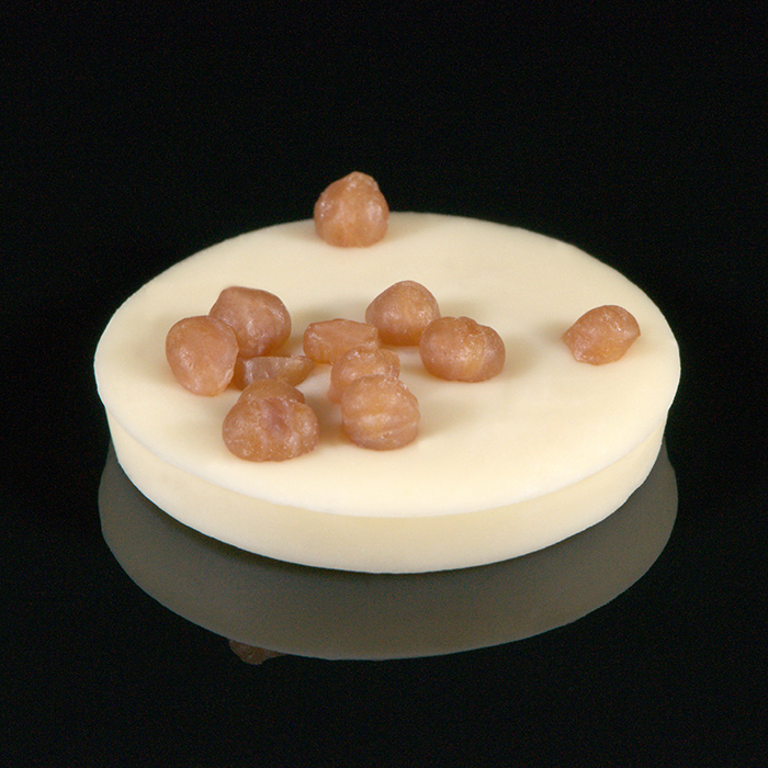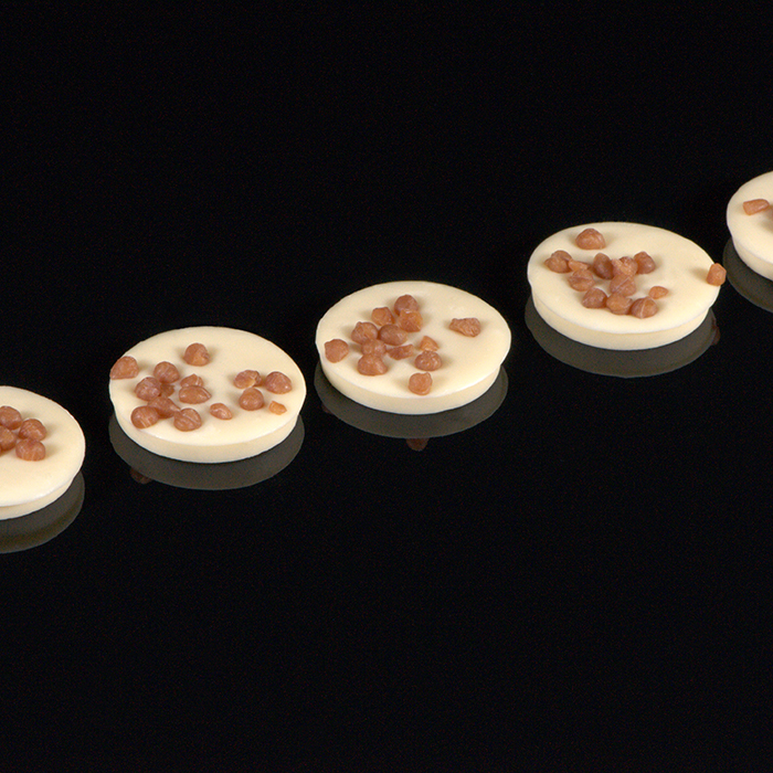 Biała czekolada z chrupiącą posypką słonego karmelu.